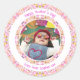 Sticker Rond Photo personnalisé Rose vibrant Bonjour vert Fête