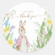 Sticker Rond Pierre le lapin Printemps fleurit Baby shower rose