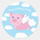 Sticker Rond Pig volant mignon 1er anniversaire Merci