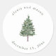Ces autocollants de mariage rustiques et hivernaux arborent un pin de Noël vert aquarelle sur un arrière - plan blanc propre.