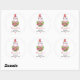 stickers cuisine - dit "fait avec amour" avec un petit coeur rouge. Conçu avec un design mignon et fantaisiste avec un adorable pingouin portant un chapeau de santa rouge. Derrière un bouquet de fleurs aux sucres de canne rayés roses et blancs.