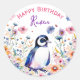 Sticker Rond Pingouin en fleurs Fille Anniversaire Personnalisé