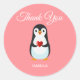 Sticker Rond Pingouin mignon avec coeur sur Merci rose