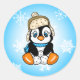 Sticker Rond Pingouin mignon bébé avec Arrière - plan de flocon