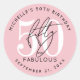 Celebrate in style with this modern round sticker design, perfect for a “Fifty and Fabulous” birthday celebration or any milestone event. The center features a large white “50” with the word “fifty” in elegant black script layered over it, and “fabulous” just below in bold black sans serif font for a sleek, modern look.