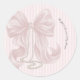 Sticker Rond Pink Bow and Stripes Baby Shower