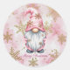 Sticker Rond Pink Christmas Gnome Gold Snowflakes