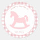 Bébé rose en vichy chèque personnalisé "à partir de la pépinière de" enveloppe scellé avec jolie silhouette de cheval rocking.