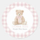 Sticker Rond Pink Gingham Teddy Bear Baby Shower