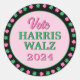 Sticker Rond Pink Green Clover 2024 Vote Harris Walz