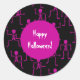Sticker Rond Pink Happy Halloween Dancing Skeletons Motif
