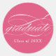 Pink Modern Elegant Script Graduation Classic Round Sticker dispose d'un script magnifique et élégant, ainsi que votre année de classe.
