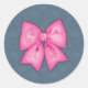 Sticker Rond Pink Ribbon Chevron Denim Arrière - plan