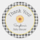 Dites merci avec ce baby shower d'été d'inspiration élégante et mignonne, merci autocollant qui comporte un tournesol jaune vif peint à la main et d'aquarelle avec un arrière - plan en vichy noir et blanc. Cet autocollant de remerciement est parfait pour les fêtes de baby shower à thème tournesol ou pour les fêtes de pique-nique d'été! Cet autocollant est personnalisable et vous pouvez modifier le texte en cliquant sur "personnaliser ce modèle".
