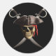 Pirate crâne, carré oculaire, casquette pirate, et deux épées croisées pour un Jolly roger classique.