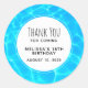 Anniversaire / événement merci autocollants avec une photo d'eau de piscine bleu clair, avec des reflets chatoyants. Un cercle blanc superposé avec votre texte à l'intérieur.