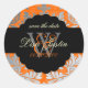 Sticker Rond PixDezines Baroque Damask/Faux Argent+Orange