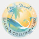 Sticker Rond PixDezines coucher de soleil/vagues rétro/palmiers