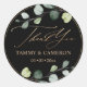 PixDezines élégante aquarelle moderne noir vert or Eucalyptus Sprigs accentué avec faux or chic script de calligraphie, autocollants de faveur de mariage. Copyright © 2010-2022 PixDezines™. Tous droits réservés. Demandes de renseignements à contact.pixdezines@gmail.com