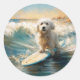 Sticker Rond Plage de Coton De Tulear Peinture de surf