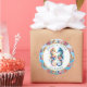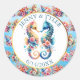 Sticker Rond Plage de sable blanc rose, bleu et or