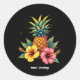 Sticker Rond Plage d'été Hawaii Floral d'Ananas et Hibiscus