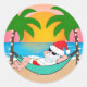 Sticker Rond Plage tropicale Père Noël Palm Tree Noël