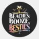 Sticker Rond Plages Booze & Besties Coconut Tree été