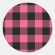 Sticker Rond Plaid Buffalo Carré rose et noir À damiers