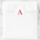 Sticker Rond Plain Modern White Red Monogram Initial Letter