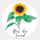 Il s'agit d'un autocollant de plante de tournesol couleur aquarelle peint à la main "You Are Loved". Vous pouvez facilement changer le nom, la couleur de police, le style et la taille avec le bouton de personnalisation Zazzle ou vous pouvez effacer tout le texte et ne laisser que l'image de tournesol.