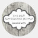 Sticker Rond Plaque de bibliothèque personnalisée Bois rustique