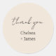Un sticker mariage chic et élégant, "merci", avec des noms de couple dans un ensemble contemporain de polices noires contre un arrière - plan couleur pêche légère. Cet article fait partie d'une suite de mariages contenant des invitations et stationnaire dans une variété d'articles neutres mélangés et assortis. .