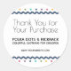 Faites la promotion de votre entreprise et de votre marque sur des enveloppes, des emballages, des dossiers et des produits promotionnels avec ces autocollants qui comprennent des pois colorés, des racks, du texte personnalisable qui dit "merci pour votre achat" et un endroit pour votre nom de magasin, slogan et site Web. Ce design est minimaliste et amusant, et il plaira aux gens de tous âges. Customisez le texte correspondant à vos besoins.