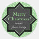 Motif pois vert festif avec étoile noire et texte vert sur autocollants ronds. Personnalisez avec votre propre message de Noël. Idéal pour coller sur les cadeaux comme alternative aux étiquettes cadeaux.