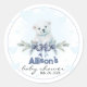 Sticker Rond Polar Bear Cub Boy Blue Hearts Baby shower d'hiver