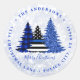 Ajoutez la touche finale à vos salutations de vacances à vos amis et votre famille avec cette étiquette de retour de Noël de police - Ligne Bleue mince, plaid noir et bleu et parties scintillant bleues sur un motif arrière - plan de parties scintillant de neige argentée. Personnalisez avec le nom de famille et l'adresse. Ce étiquette de adresse de Noël de la police est parfait pour les familles de policiers ou les cartes de Noël du service de police. DROIT D'AUTEUR © 2020 Judy Burrows, Black Dog Art - Tous droits réservés. Police Christmas Blue Plaid Parties scintillant Retour Adresse Sticker Classic Round