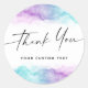 Elégant, personnalisé, stickers de remerciement avec des bordures d'aquarelle violet et bleu aqua haut et bas. Une ligne de texte personnalisable. Vous pouvez ajouter du texte et télécharger votre propre logo avec l'outil de personnalisation.