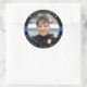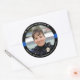 Les héros vivent pour toujours ! Honorer votre policier bien-aimé et avec cet autocollant de Mémorial de police de la Ligne Bleue Mince dans un design noir et bleu aux couleurs du drapeau de la police. Personnalisez avec la photo, le nom et la date de votre officier. Cette mince vignette commémorative de la police de la ligne bleue sera un souvenir précieux pour honorer un policier ou un agent d'application de la loi déchu. Parfait pour les services de police pour honorer un officier tombé. DROIT D'AUTEUR © 2020 Judy Burrows, Black Dog Art - Tous droits réservés. Sticker rond classique pour policiers Mémorial Fallen Officier Héros Live Forever