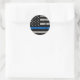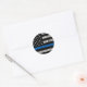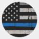 Sticker Ligne Bleue Mince - Drapeau américain dans les couleurs du drapeau de la police, design en détresse. Cet autocollant de police est parfait pour envoyer des enveloppes, empaqueter des cadeaux pour les soirées de fin d'études ou de retraite et les services de police. DROIT D'AUTEUR © 2020 Judy Burrows, Black Dog Art - Tous droits réservés. Sticker rond Rustique mince Police Officier Classic