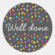 Bravo autocollant pédagogique avec un design simple et moderne de pois ou de taches d'aquarelle couleur arc-en-ciel. Design contemporain épuré. Whimsical, boho et fun, Lumineux et coloré. Sur arrière - plan gris pour un look propre et mignon. Merci autocollant mignon.