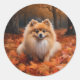 Sticker Rond Poméranie en automne Feuilles Automne Inspire