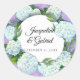 "Sticker rond Flore Violet Blanc Hydrangea Leaf Mariage damassé Classic." Elégant mélange et assortiment collection de dessins. Main peinte en acrylique sur toile par Audrey Jeanne Roberts, artiste de renommée internationale, copyright. La lumière du soleil et l'ombre définissent les fleurs d'hydrangée blanches romantiques qui parlent d'été.