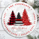 Ajoutez la touche finale à vos enveloppes, cartes de Noël et à votre poste avec cette étiquette unique d'adresse de retour de Noël de pompier - Ligne rouge mince, plaid noir et rouge et parties scintillant rouges sur un motif arrière - plan de parties scintillant de neige argentée. Personnalisez avec le nom de famille et l'adresse. Cette étiquette d'adresse de retour de Noël du pompier est parfaite pour les familles de pompiers ou les cartes de Noël du service des incendies. DROIT D'AUTEUR © 2020 Judy Burrows, Black Dog Art - Tous droits réservés. Pompier Arbre de Noël Adresse de retour Sticker rond classique