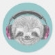 Photo Victoria Novak | Shutterstock. ID d'image : 516684820 | Ce design présente un joli paresseux portant un ensemble de casques roses.