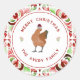 Sticker Rond Poulet Noël Rouge & Vert Aquarelle