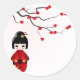 Sticker Rond Poupée Kokeshi sous la branche de Sakura