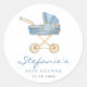 Ajoutez une touche mignonne à vos invitations et faveurs avec cet autocollant de baby shower personnalisable. Il présente une illustration aquarelle d'une poussette bébé avec des accents floraux. Cet autocollant de baby shower bleu est parfait pour le baby shower C'est un garçon. Personnalisez en ajoutant vos détails.