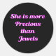 Cool Christian Design, Elle est plus Précieuse que des bijoux en rose et blanc vif sur un arrière - plan noir.