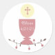 Sticker Rond Première communion, Chalice rose avec croix